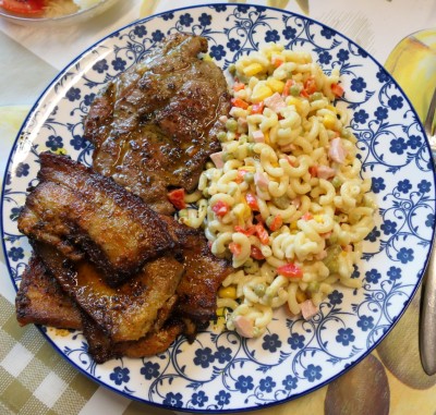 Grillfleisch mit Nudelsalat (Rezept siehe oben)