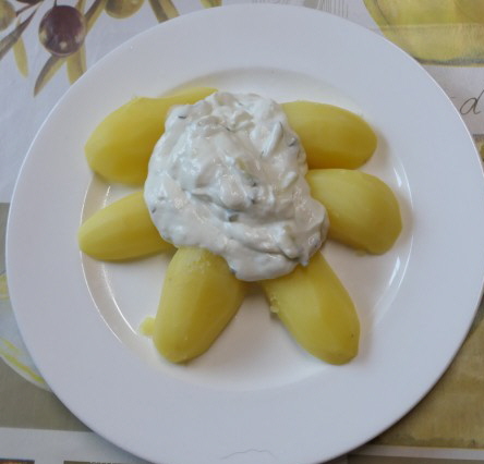 Frisch gekochte Kartoffeln mit Kräuterquark